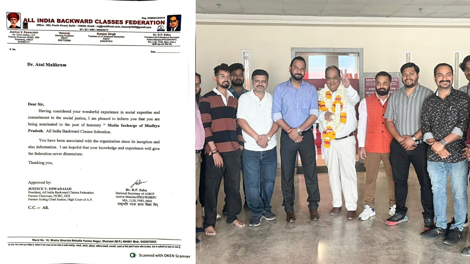 *इंदौर, 16 /02/26:* *ऑल इंडिया बैकवर्ड क्लासेस फेडरेशन (एआईबीसीएफ)* ने संगठन के विस्तार और मीडिया गतिविधियों को सशक्त बनाने की दिशा में महत्वपूर्ण निर्णय लेते हुए *राजनीतिक रणनीतिकार डॉ. अतुल मलिकराम को मध्य प्रदेश का मीडिया इंचार्ज* नियुक्त किया है। यह नियुक्ति फेडरेशन के राष्ट्रीय नेतृत्व की सहमति से की गई है। फेडरेशन के *अध्यक्ष जस्टिस वी. ईश्वरैया* के अनुमोदन से जारी आदेश में कहा गया है कि डॉ. मलिकराम सामाजिक न्याय, पिछड़े वर्गों, अनुसूचित जाति, अनुसूचित जनजाति और अल्पसंख्यक समाज के मुद्दों पर लंबे समय से सक्रिय रहे हैं। उनके अनुभव और रणनीतिक सोच से संगठन को नई दिशा और मजबूती मिलेगी।